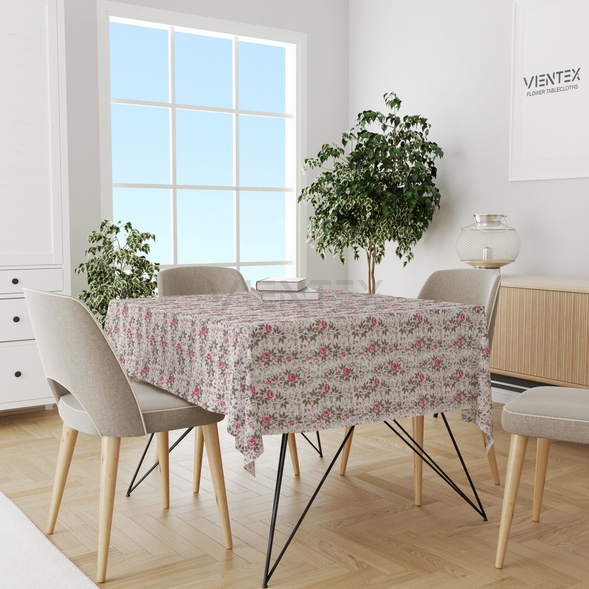 Vientex Çiçek Desenli Masa Örtüsü - CICTC101 KARE - 140 Cm x 140 Cm