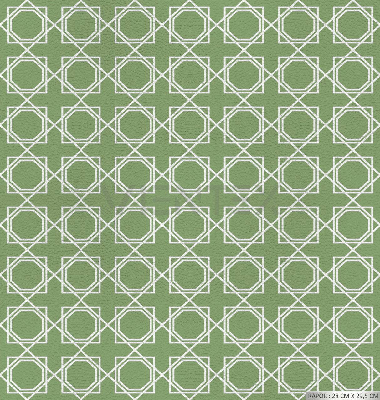 Geometrik Desenli Döşemelik Suni Deri - GEO100 1 METRE - HAKİ