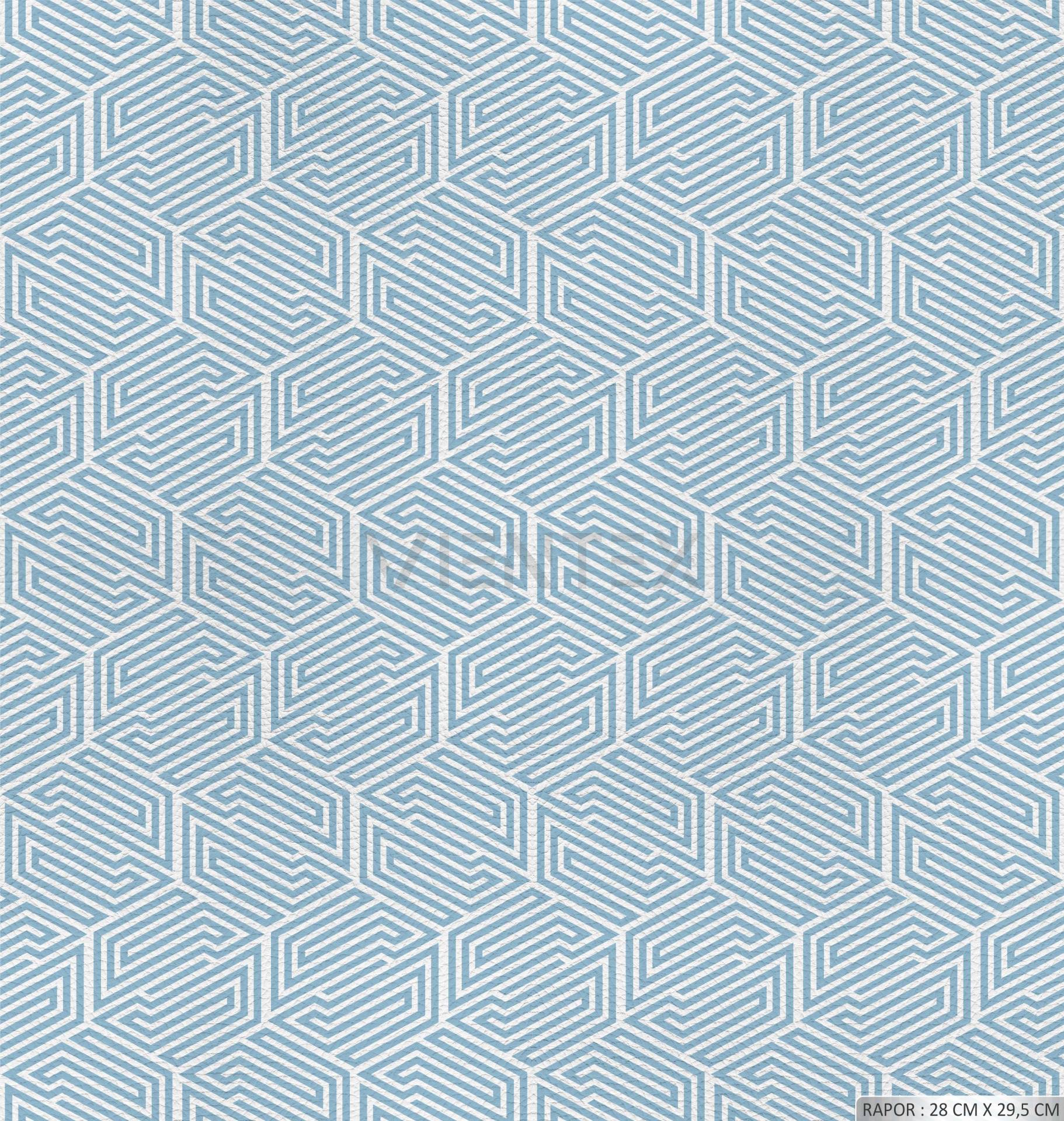 Geometrik Desenli Serisi Döşemelik Suni Deri - GEO141 1 METRE - BEBE MAVİ