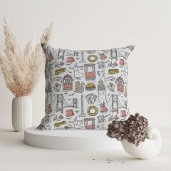 İstanbul Desenli Suni Deri Kırlent Kılıfı - ISTCH111