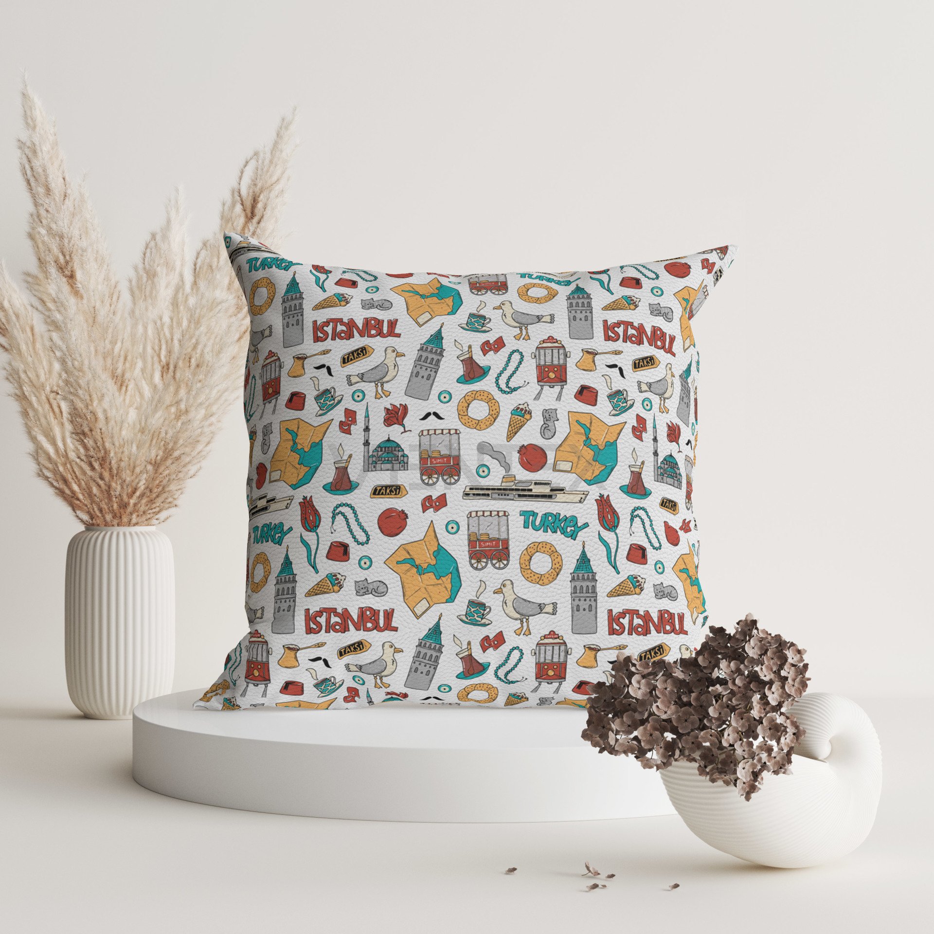 İstanbul Desenli Suni Deri Kırlent Kılıfı - ISTCH112