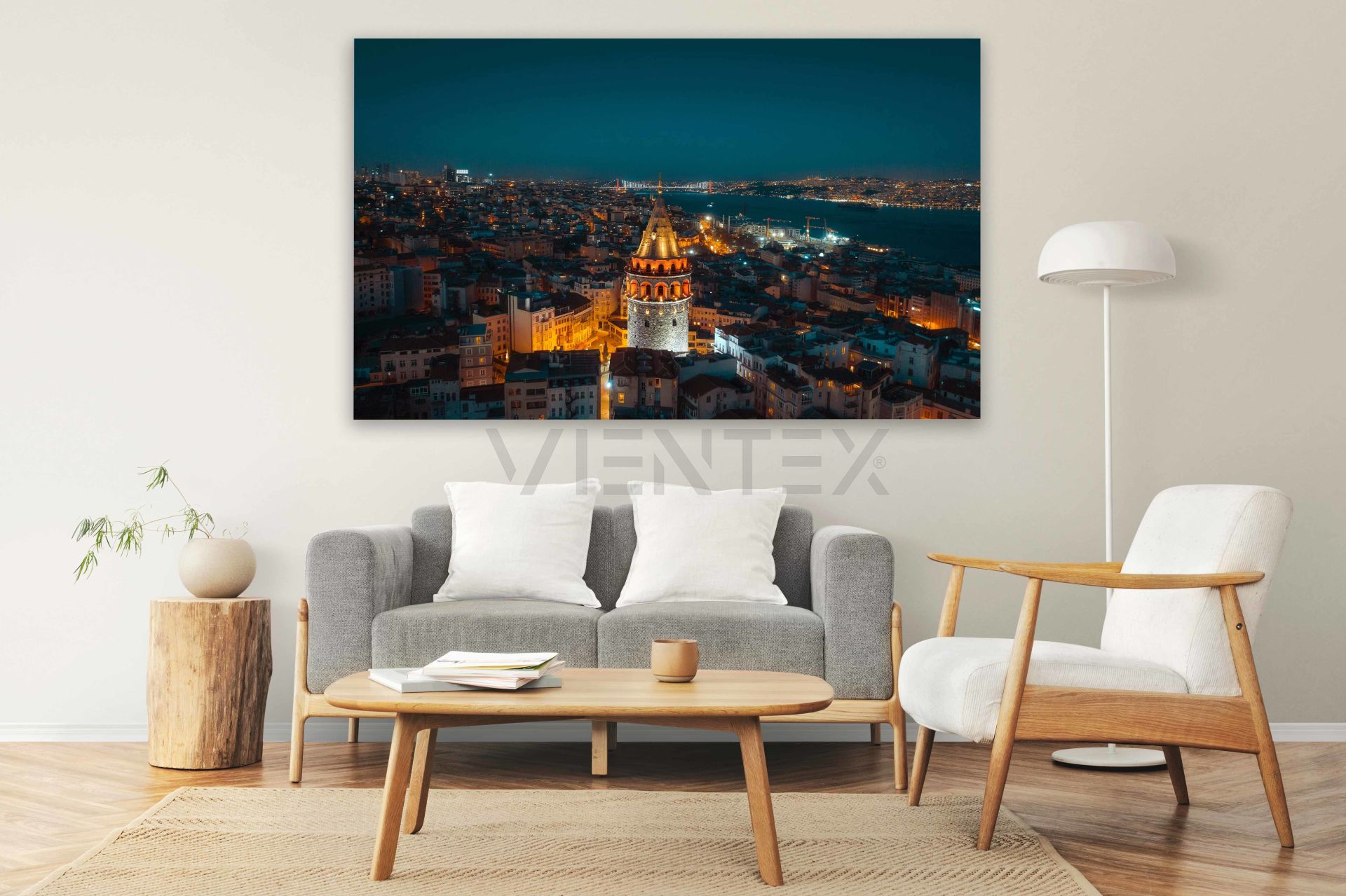 3-) Tüm tablolarımızda 370gr/m2 %100 kaplamalı polyester birinci sınıf kumaşlar kullanılmaktadır. Sağlığa zararlı maddeler bulunmamaktadır. İstanbul Galata Kulesi Akşam Tablosu ve diğer tüm tablolar profesyonel işçilik ile hazırlanmaktadır.