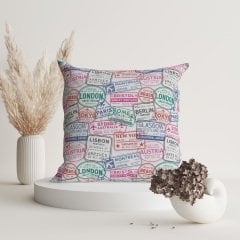Londra Desenli Suni Deri Kırlent Kılıfı - LONCH109