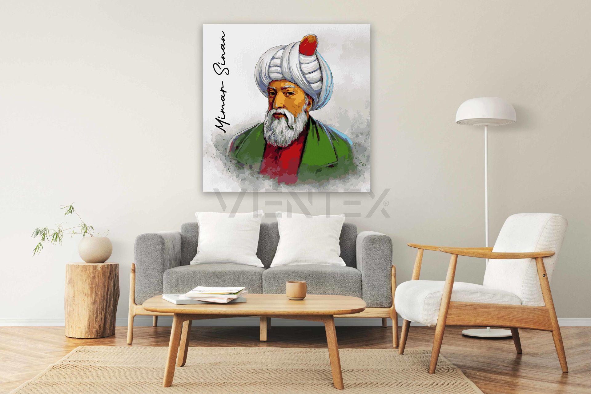 3-) Tüm tablolarımızda 370gr/m2 %100 kaplamalı polyester birinci sınıf kumaşlar kullanılmaktadır. Sağlığa zararlı maddeler bulunmamaktadır. Mimar Sinan Tablosu ve diğer tüm tablolar profesyonel işçilik ile hazırlanmaktadır.