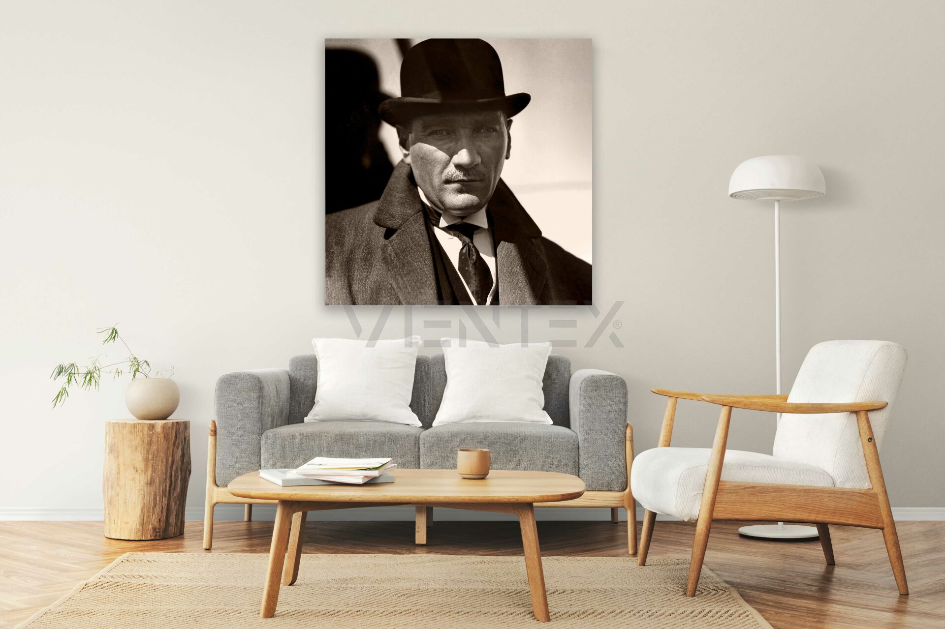 4-) Tablolarda kullanılan şase ve ahşap çerçeveler birinci sınıf çam ağacından imal edilmektedir. Kullanılan çam çerçeveler kurutulmuş ve fırınlanmıştır. Mustafa Kemal Atatürk Kadıköy Porte Tablosu ve diğer tüm ürünlerde ahşap şaseler 2,5x2,5cm kalınlığa sahiptir. Ahşap şaselerinin güçlü yapısı sayesinde, tabloya herhangi bir fiziksel darbe olduğunda dahi güçlü yapısını korumaktadır.