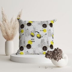 New York Desenli Suni Deri Kırlent Kılıfı - NYCCH105