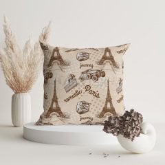 Paris Desenli Suni Deri Kırlent Kılıfı - PARCH105