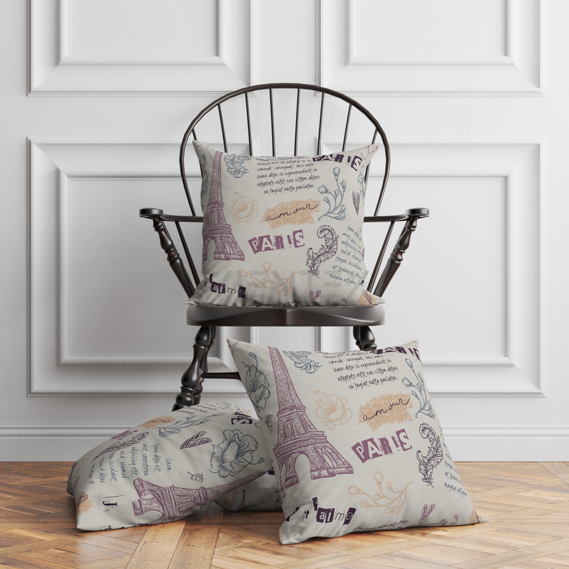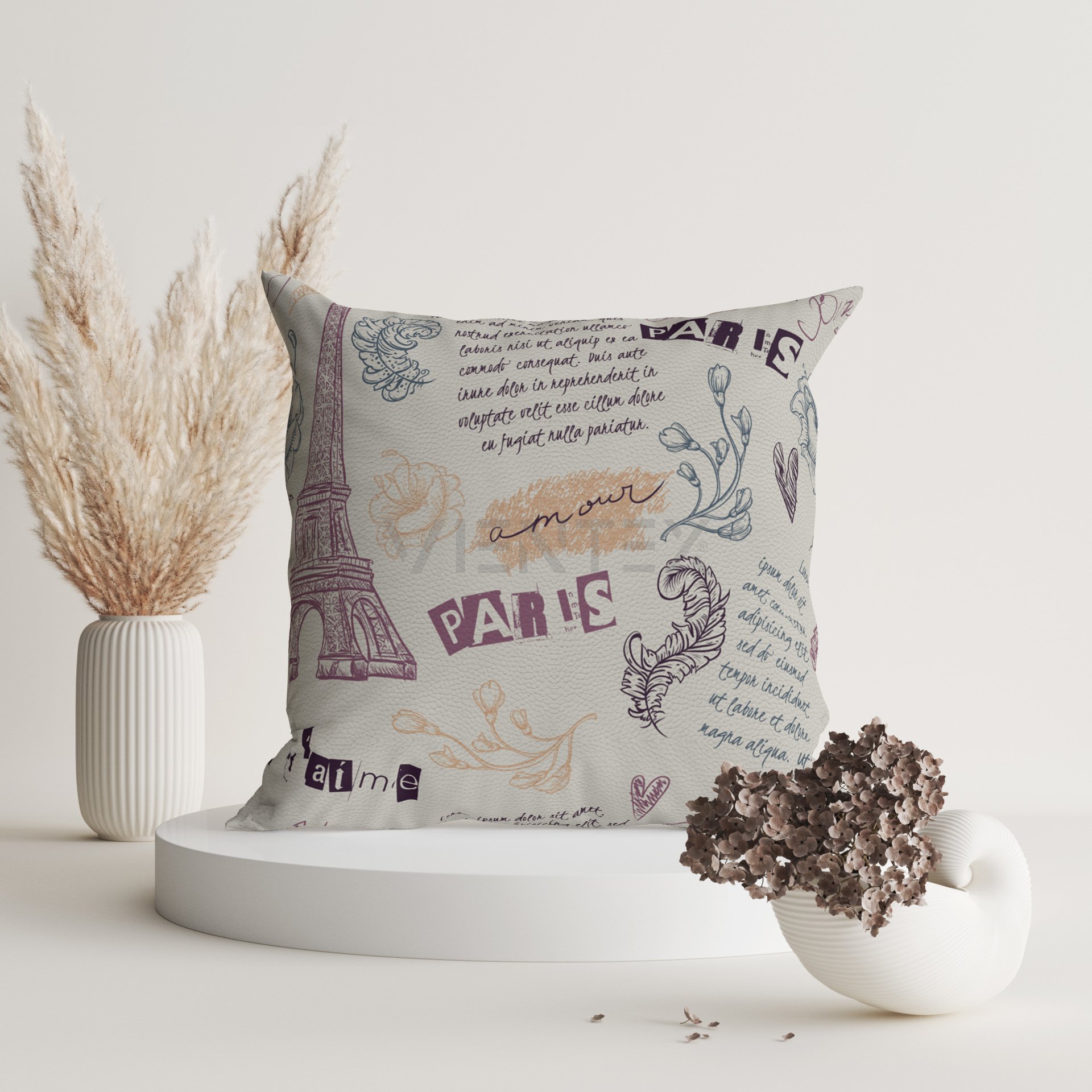 Paris Desenli Suni Deri Kırlent Kılıfı - PARCH106