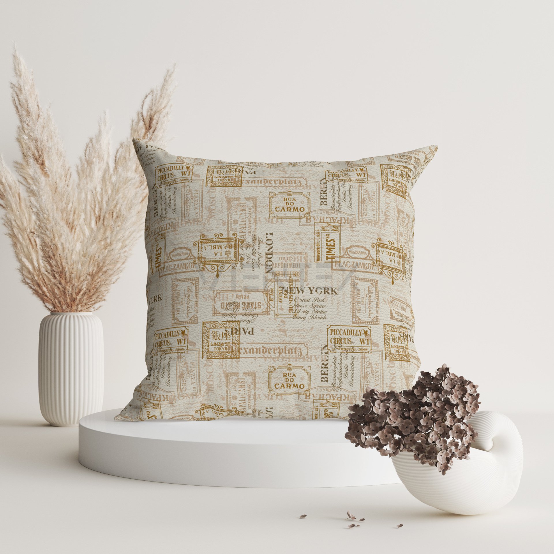 Paris Desenli Suni Deri Kırlent Kılıfı - PARCH115