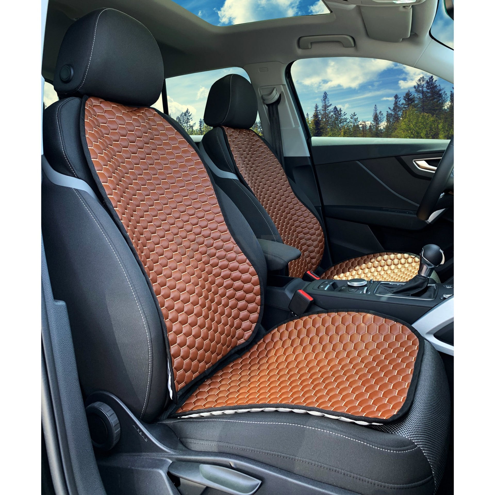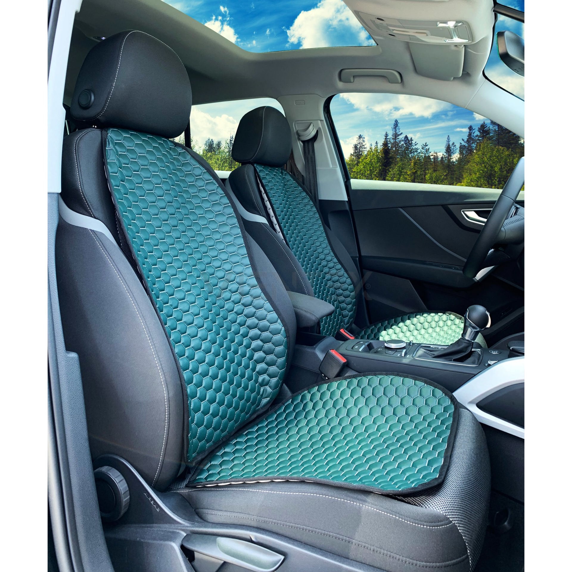 2'Li Ön Set Petek Desenli Universal Deri Oto Koltuk Kılıfı Koltuk Minderi KOYU YEŞİL (4051)