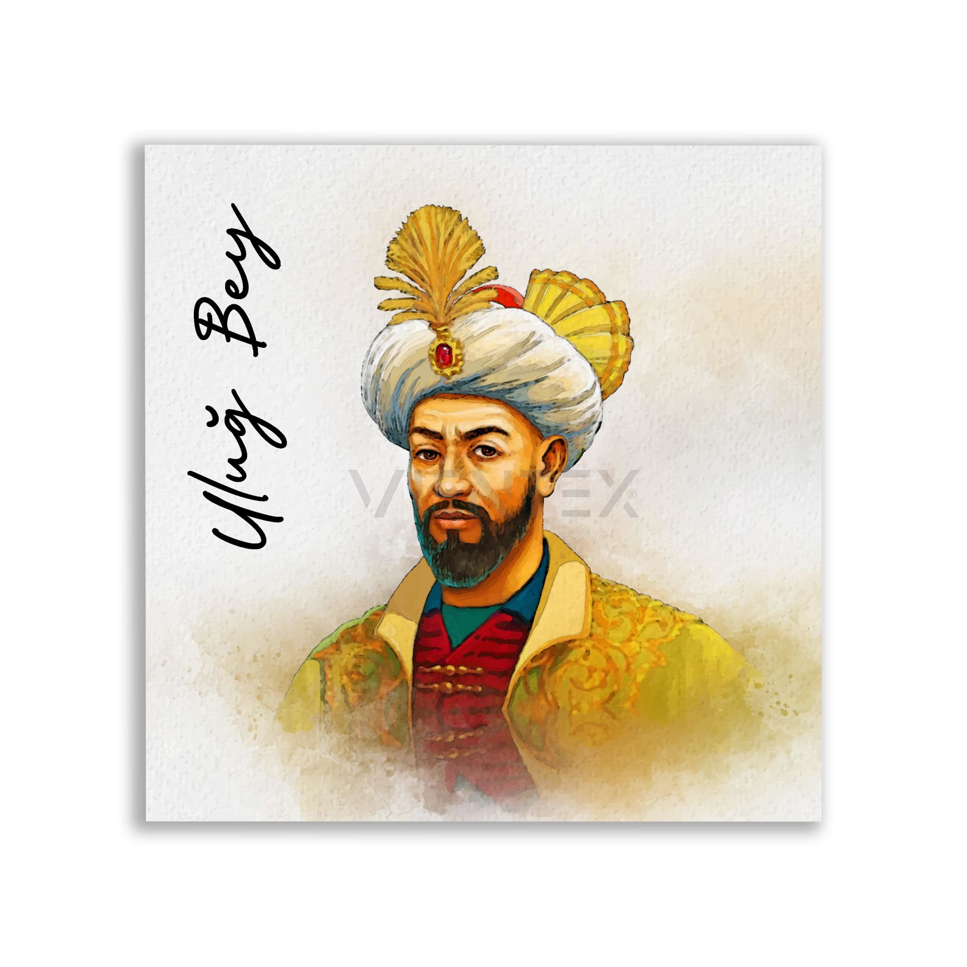 4-) Tablolarda kullanılan şase ve ahşap çerçeveler birinci sınıf çam ağacından imal edilmektedir. Kullanılan çam çerçeveler kurutulmuş ve fırınlanmıştır. Uluğ Bey Tablosu ve diğer tüm ürünlerde ahşap şaseler 2,5x2,5cm kalınlığa sahiptir. Ahşap şaselerinin güçlü yapısı sayesinde, tabloya herhangi bir fiziksel darbe olduğunda dahi güçlü yapısını korumaktadır.