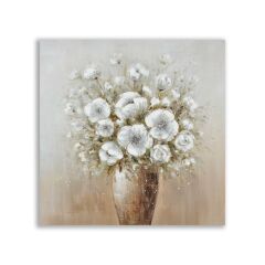 Vazoda Beyaz Çiçek Buketi Yağlı Boya Tablosu - FWN137