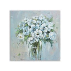 Vazoda Beyaz Çiçek Buketi Yağlı Boya Tablosu - FWN139