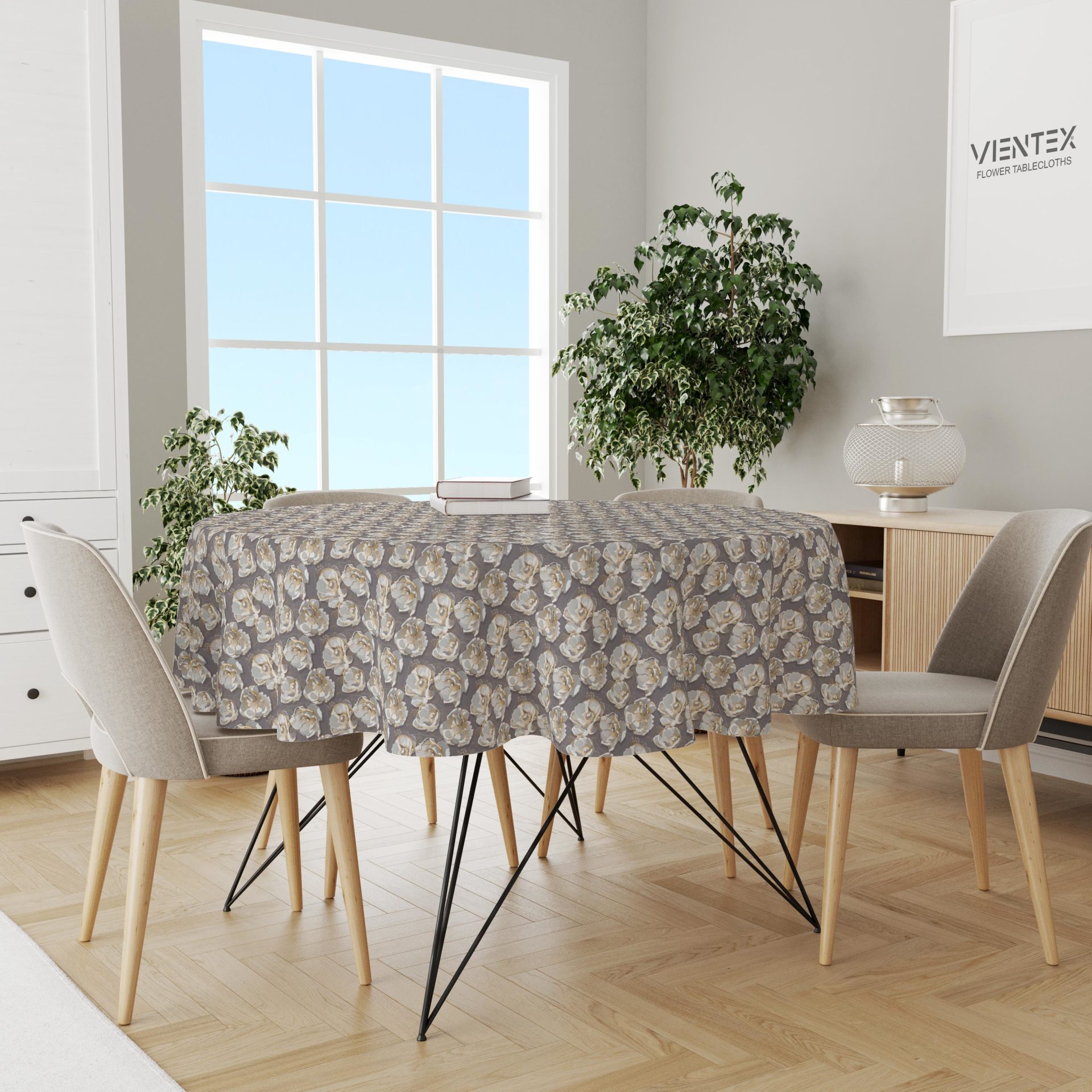Vientex Çiçek Desenli Masa Örtüsü - CICTC104 YUVARLAK - 130 Cm x 130 Cm
