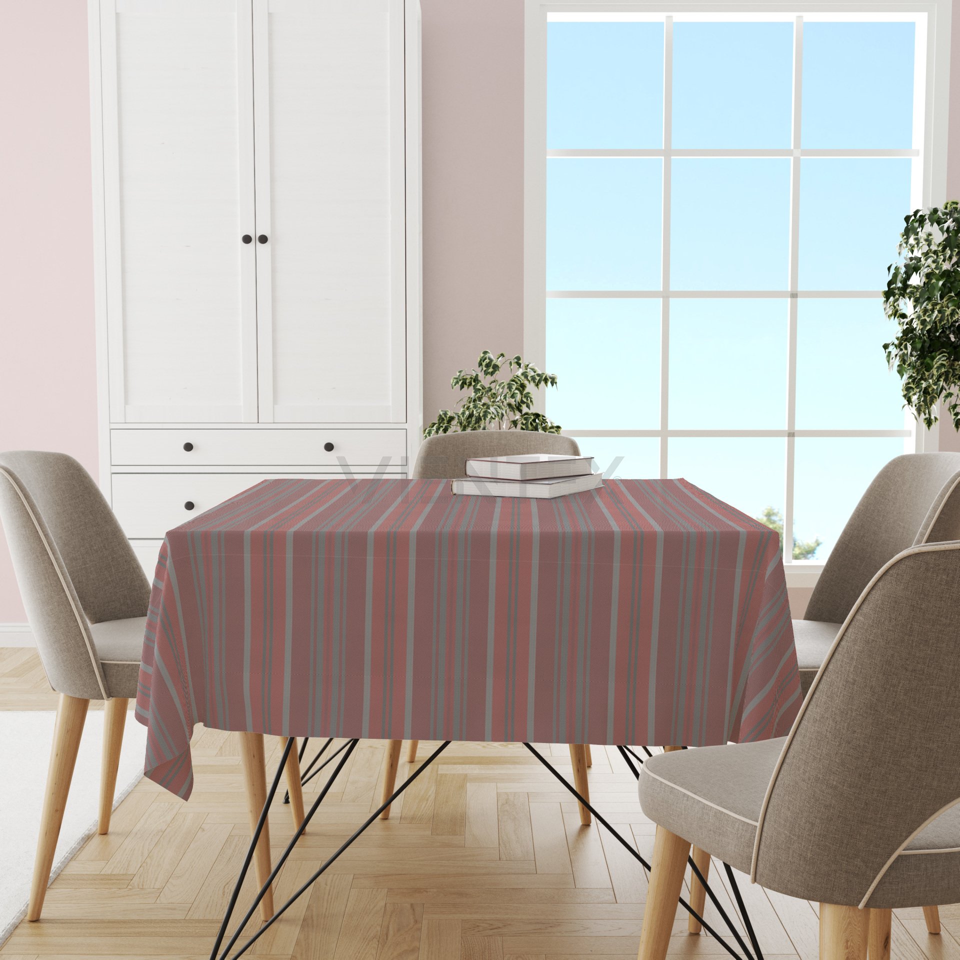 Vientex Çizgili Masa Örtüsü - OKTC110 KARE - 130 Cm x 130 Cm