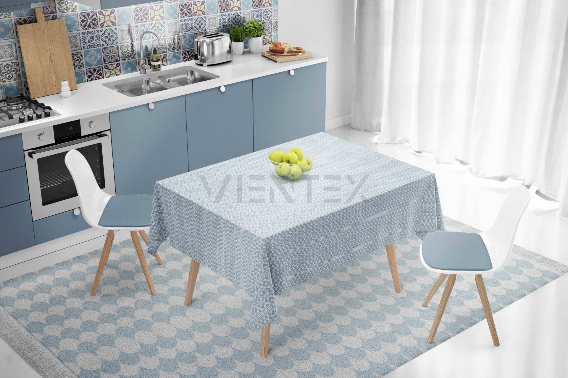 4-) Vientex Masa Örtüleri su geçirmezdir ve yüzey deseni Safir serisidir.