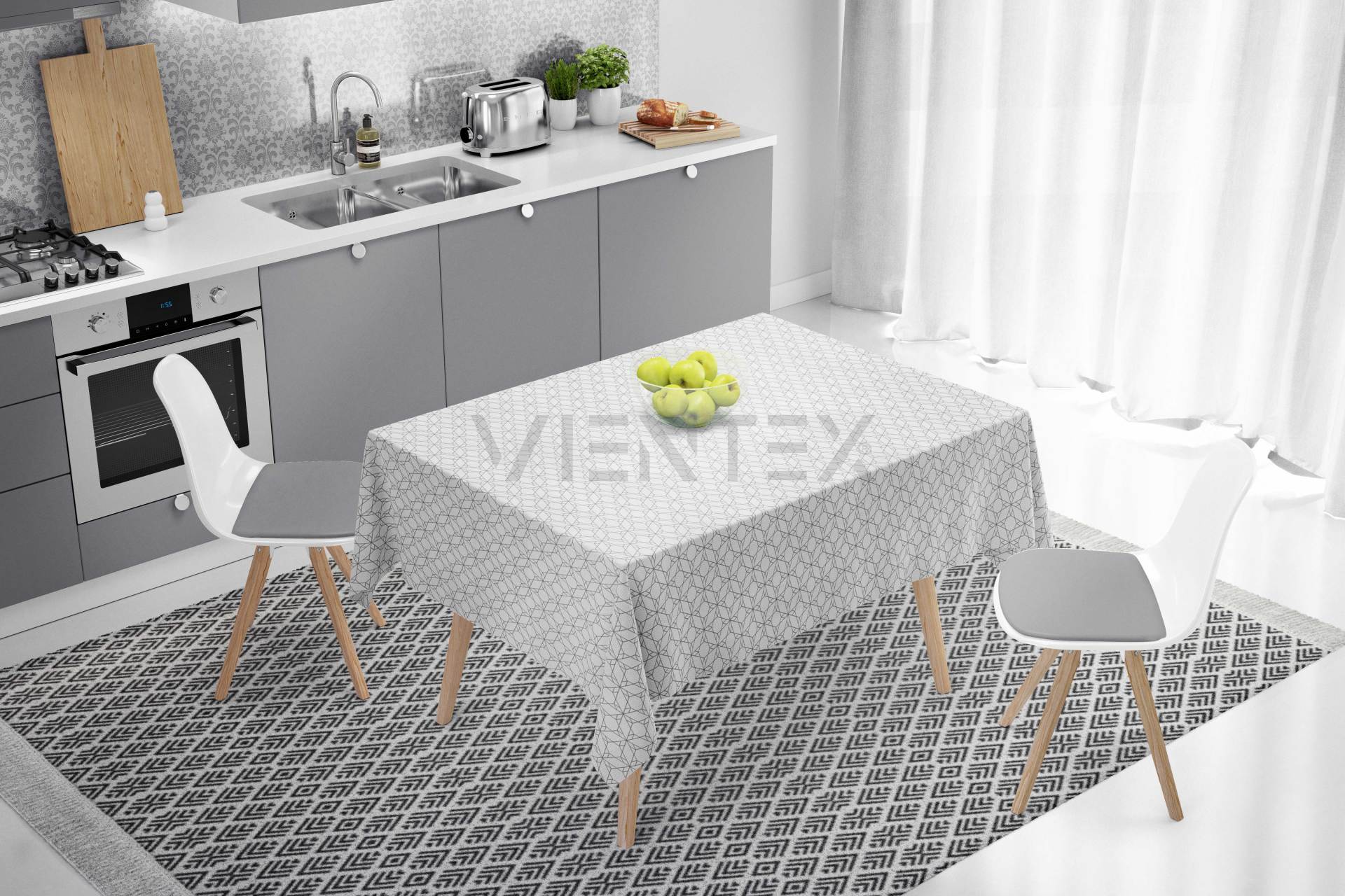 Vientex Geometrik Desen Masa Örtüsü - GEOTC122 DİKDÖRTGEN - 100 Cm x 140 Cm - GRİ