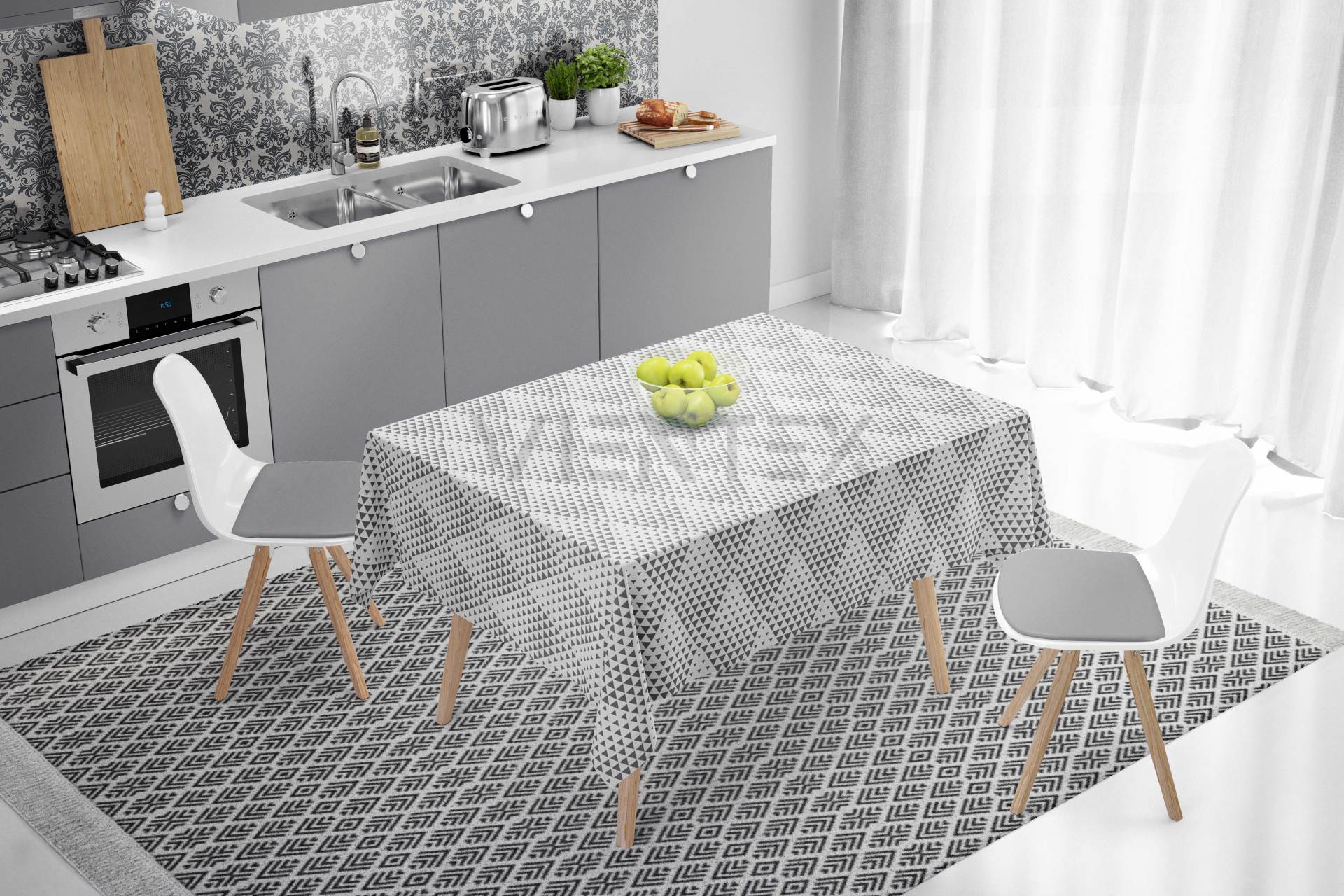 Vientex Geometrik Desen Masa Örtüsü - GEOTC127 DİKDÖRTGEN - 140 Cm x 200 Cm - GRİ