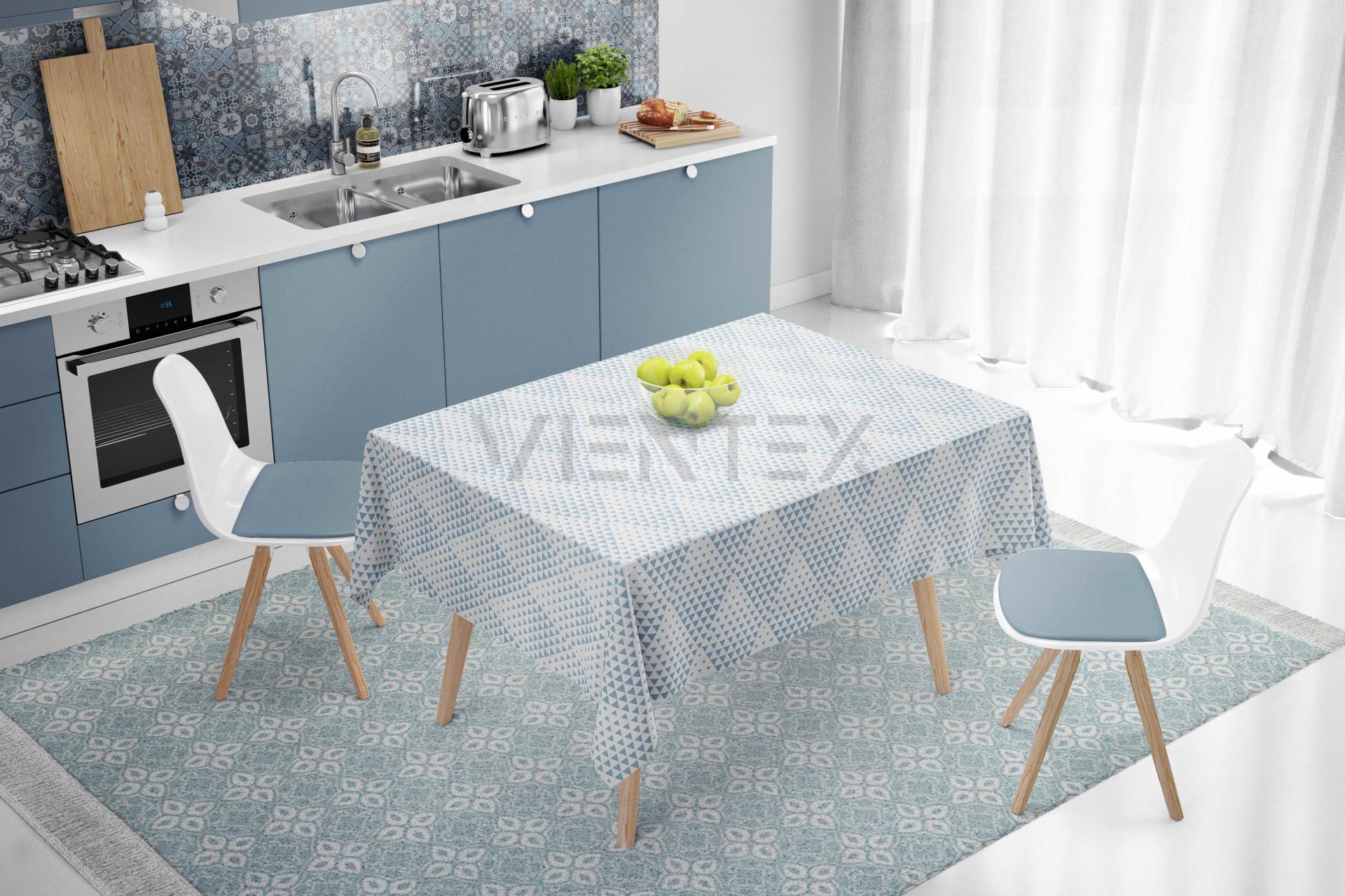 Vientex Geometrik Desen Masa Örtüsü - GEOTC127 DİKDÖRTGEN - 140 Cm x 250 Cm - BEBE MAVİ