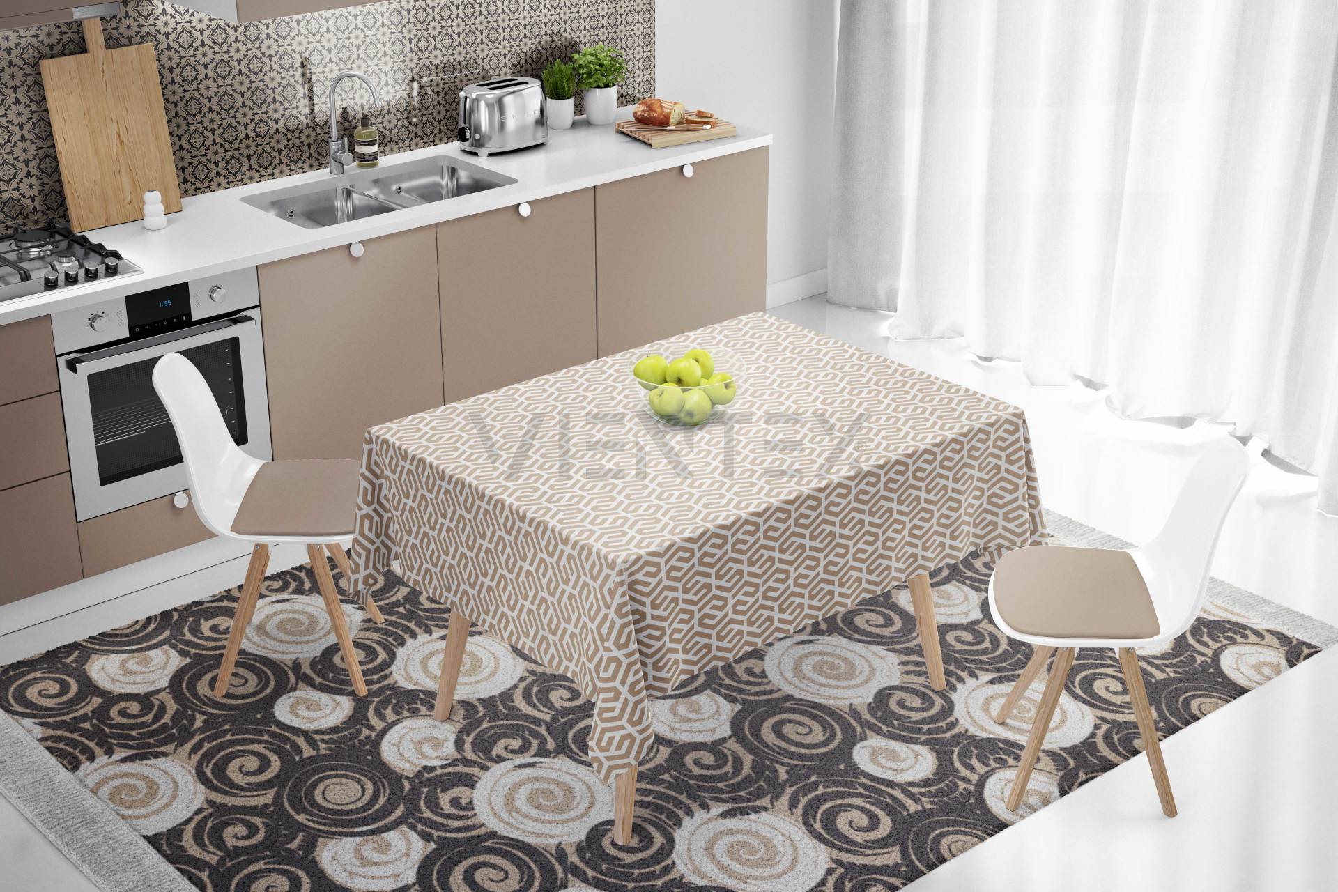 Vientex Geometrik Desen Masa Örtüsü - GEOTC129 DİKDÖRTGEN - 140 Cm x 200 Cm - AÇIK BEJ