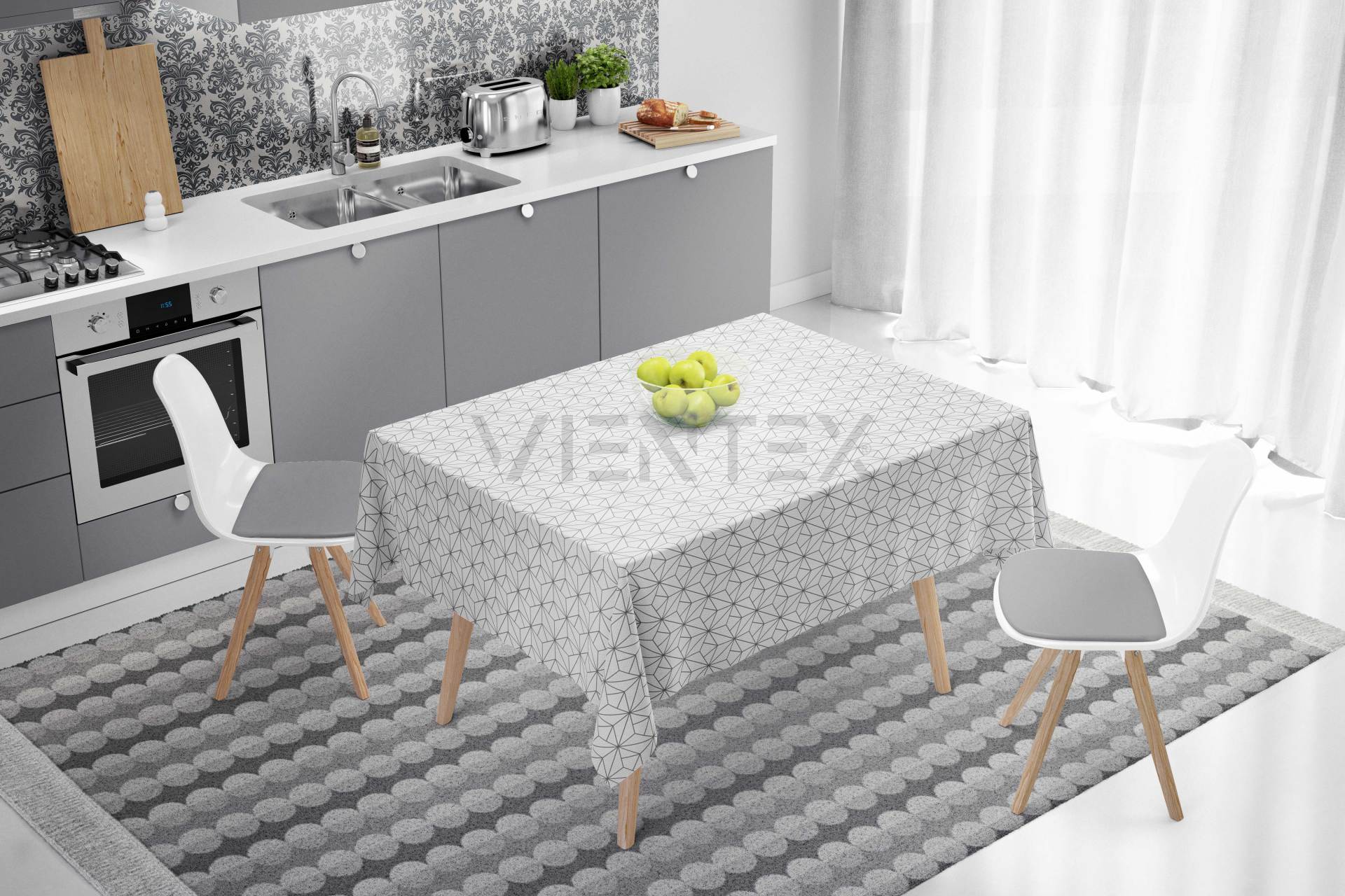 Vientex Geometrik Desen Masa Örtüsü - GEOTC131 DİKDÖRTGEN - 140 Cm x 200 Cm - GRİ