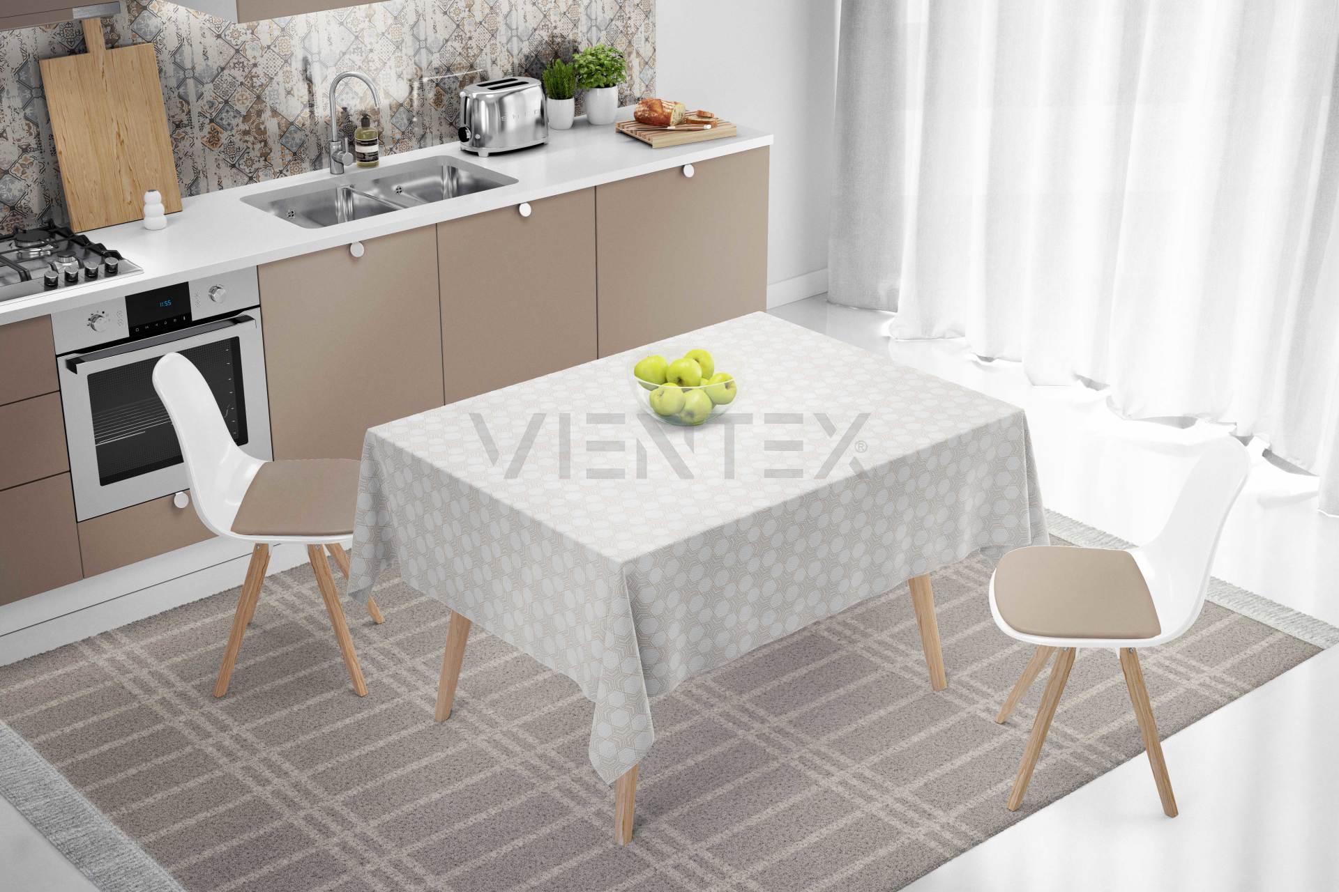 Vientex Geometrik Desen Masa Örtüsü - GEOTC132 DİKDÖRTGEN - 100 Cm x 140 Cm - AÇIK BEJ