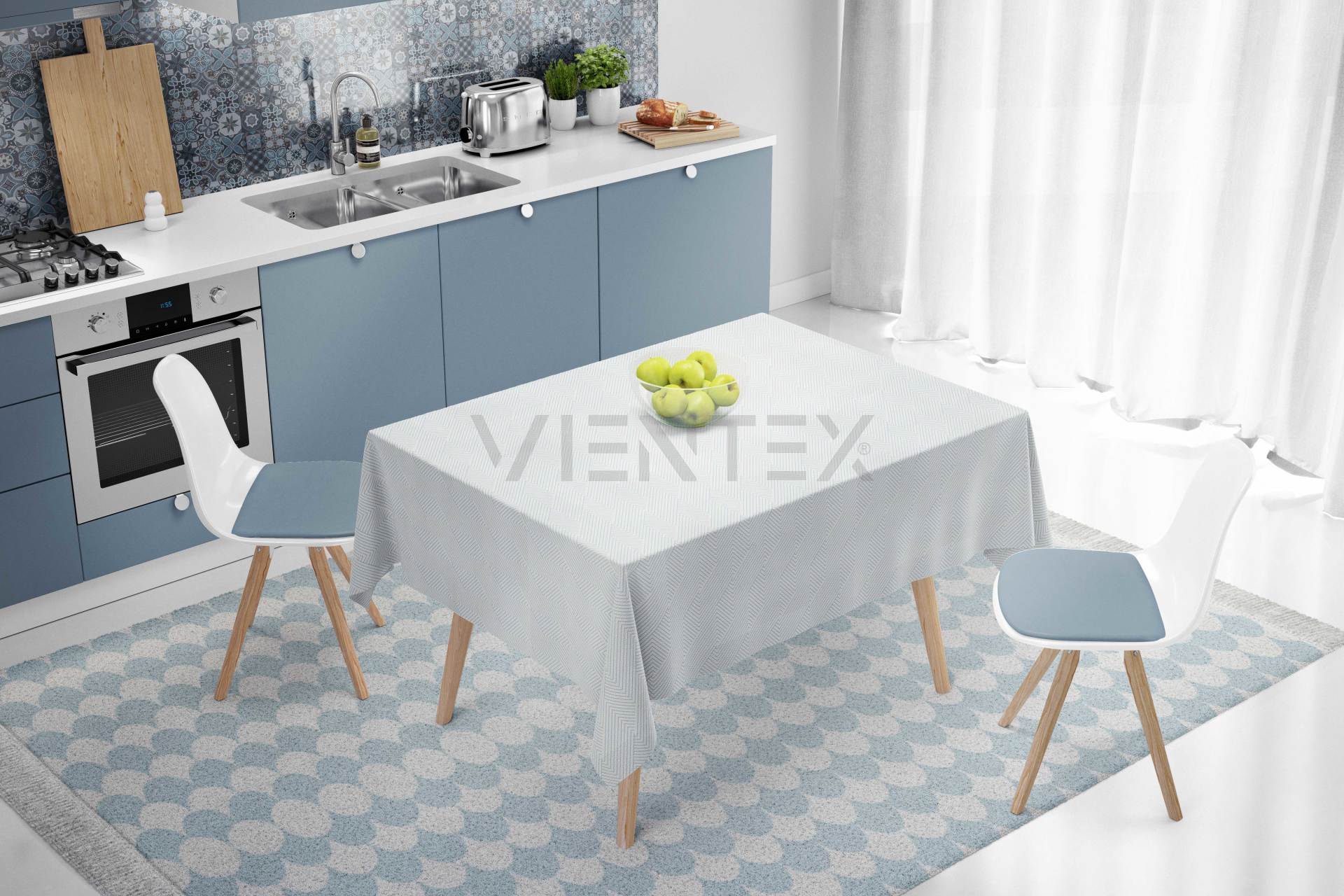 4-) Vientex Masa Örtüleri su geçirmezdir ve yüzey deseni Safir serisidir.