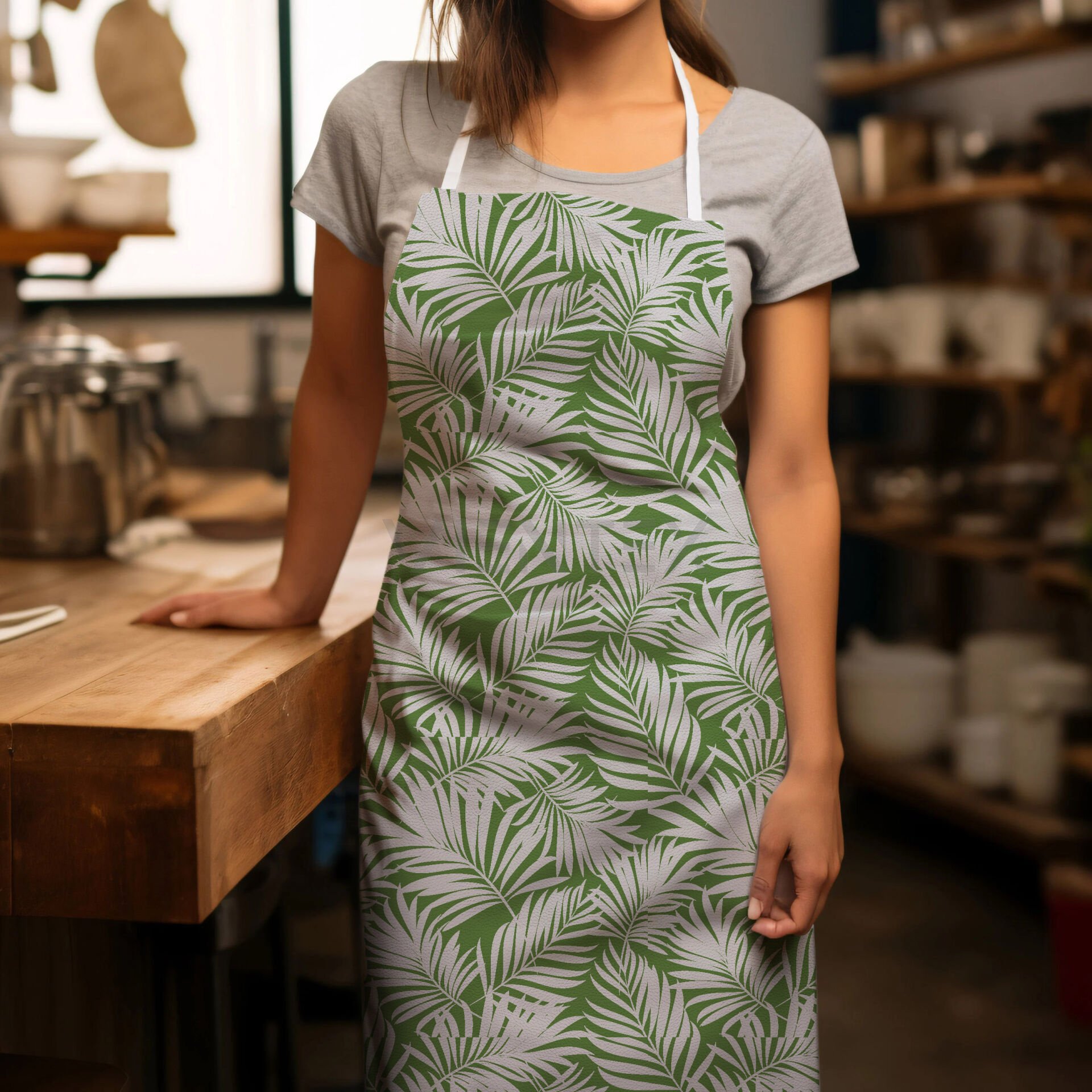 Vientex Su Geçirmez Çiçek Desenli Koruyucu Suni Deri Önlük - APRC152 Boy=100 Cm x En=70 Cm - HAKİ
