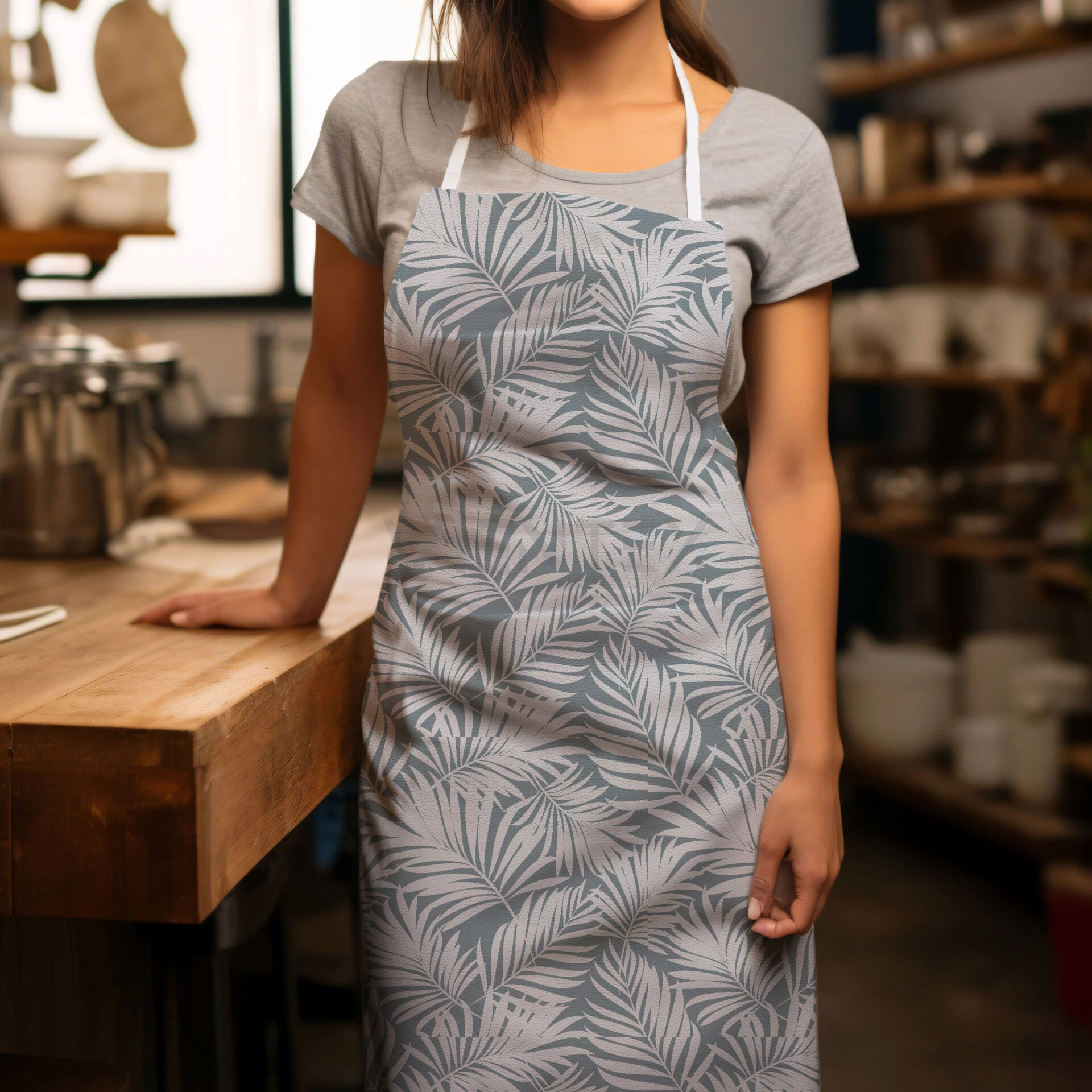 Vientex Su Geçirmez Çiçek Desenli Koruyucu Suni Deri Önlük - APRC152 Boy=80 Cm x En=70 Cm - AÇIK GRİ